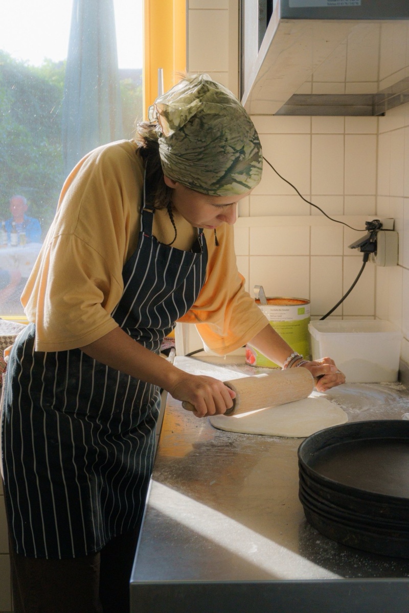 Freitags von 18 bis 22 Uhr ist Pizza-Abend . Aus dem Holzofen im Garten kommen immer wieder neue Kreationen: ebenfalls - wenn möglich - mit jahreszeitlich verfügbaren Öko-Zutaten aus der Region. Eine Tischreservierung ist nicht erforderlich. Wenn Sie ihre Pizzen mitnehmen wollen, bringen Sie einfach entsprechende Behälter mit.